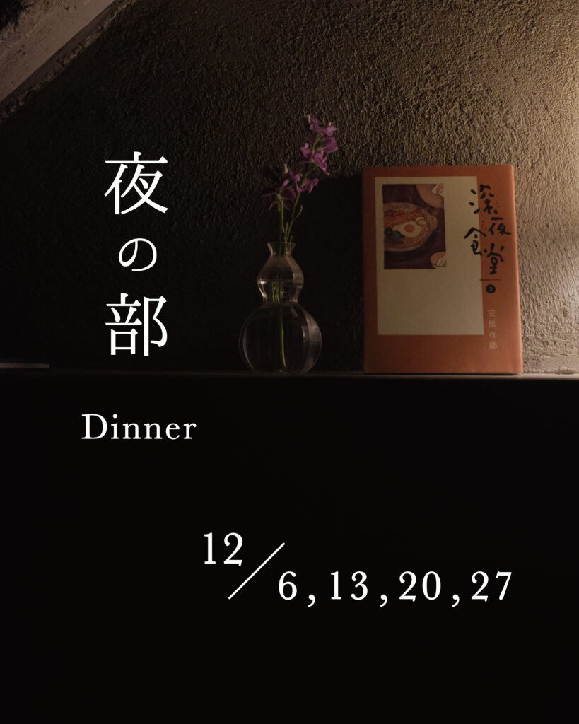 さて、12月も「夜の部」を、12/6㈯ ,13㈯ ,20㈯ ,27㈯ に予定しております。